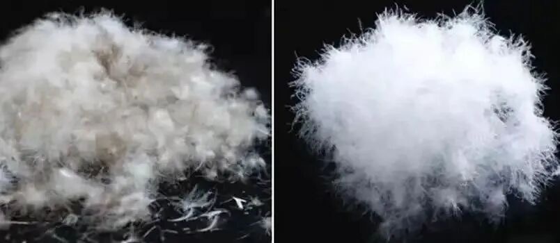 In contrast, individual filaments that detach from these clusters, known as down fibers, lack resilience and loft, offering inferior warmth. Their slender, thread-like shape also makes them prone to working their way through the fabric, a common issue referred to as "down leakage".