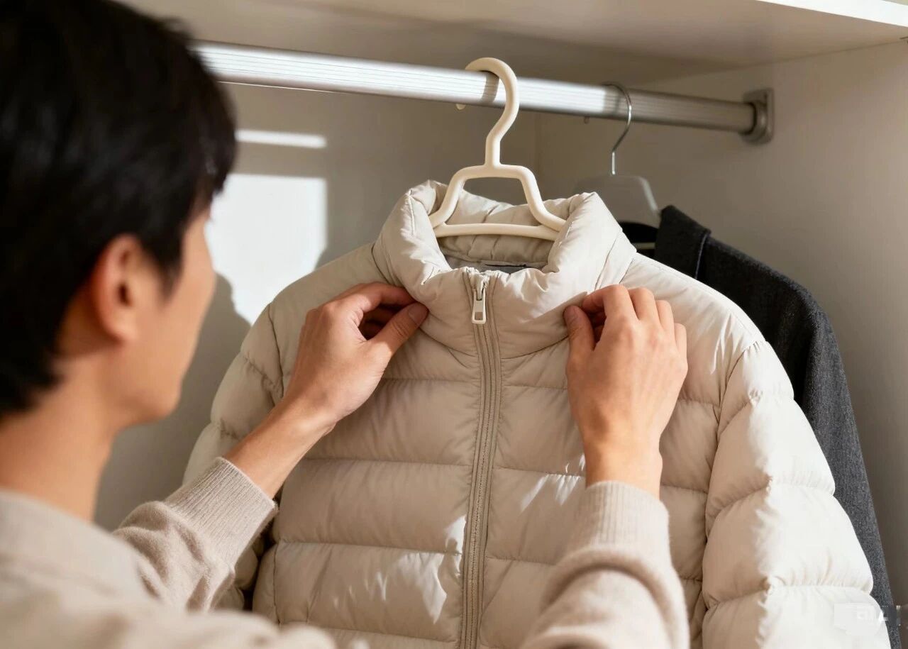 To prevent the down clusters from bending or breaking, down jackets should be stored hanging whenever possible. Never compress them aggressively in an attempt to save space, as this can cause permanent damage to the down's loft.
