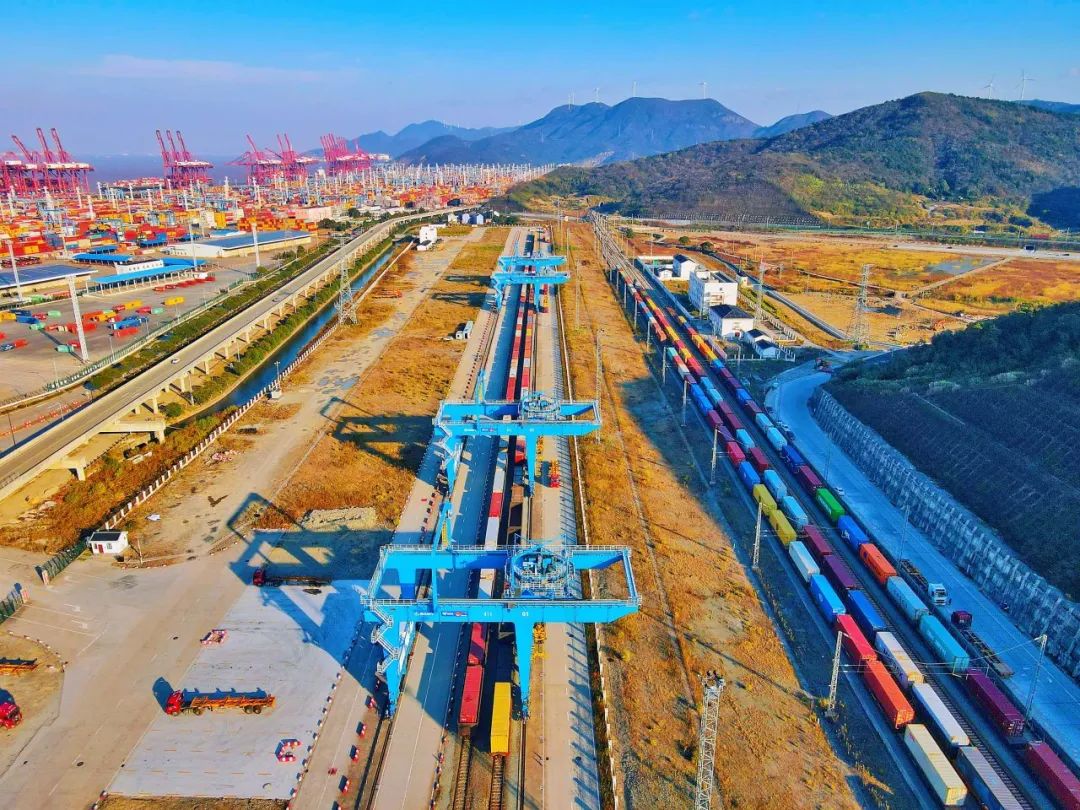 Operation site of Chuanshan Port Station for sea-rail intermodal transport at Ningbo Zhoushan Port.