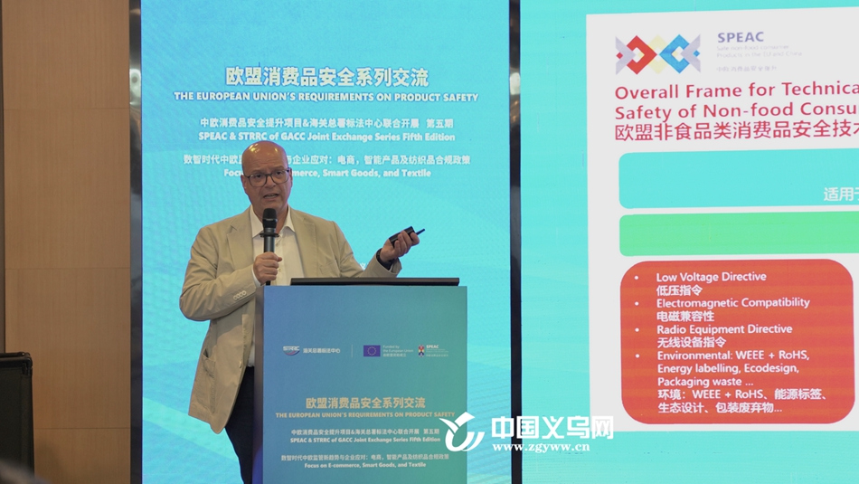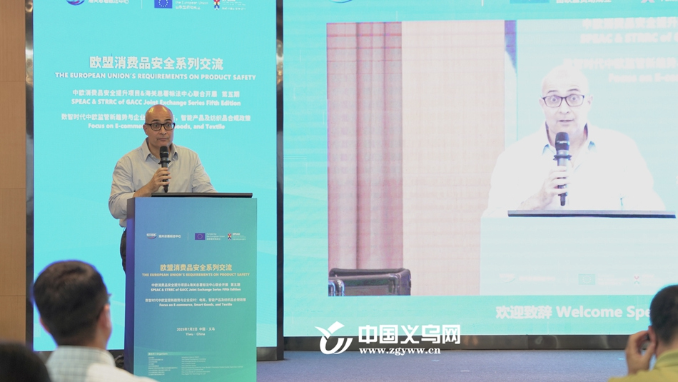 7月2日,由海关总署标法中心、中欧消费品安全提升项目(SPEAC)联合主办,杭州海关、义乌市市场发展委员会等单位承办的中欧消费品安全培训交流活动在义乌举行。来自义乌的100余家出口欧洲企业、行业协会代表、认证及标准研究等领域专业人员参加现场交流活动。