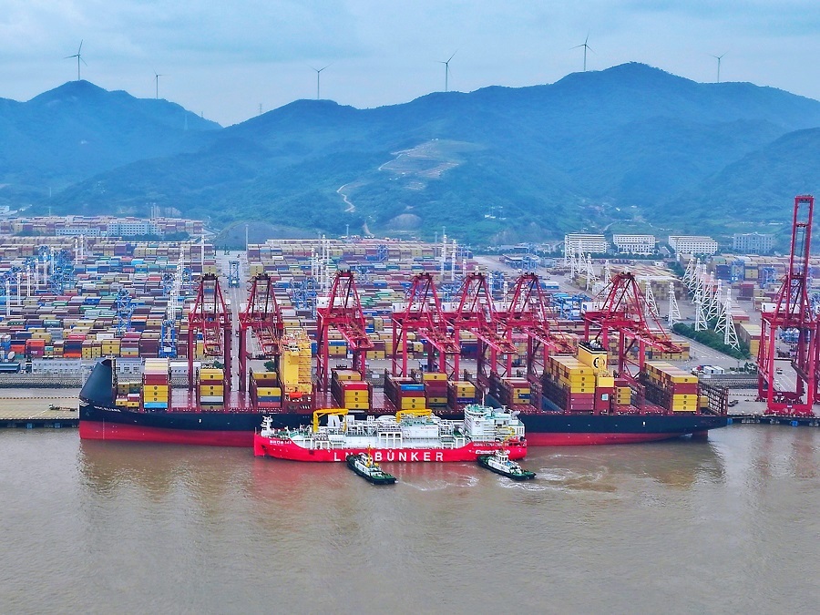保税船燃供应能力是衡量港口配套服务竞争力的重要指标。近年来,受国际航运业碳减排政策推动,LNG、甲醇等绿色能源船舶大量投用,相关加注需求蓬勃增长。自2023年6月宁波舟山港梅山港区完成对达飞联合轮首票保税LNG加注以来,加注量从每年3万余立方米迅速扩展到今年前10个月的20万立方米。