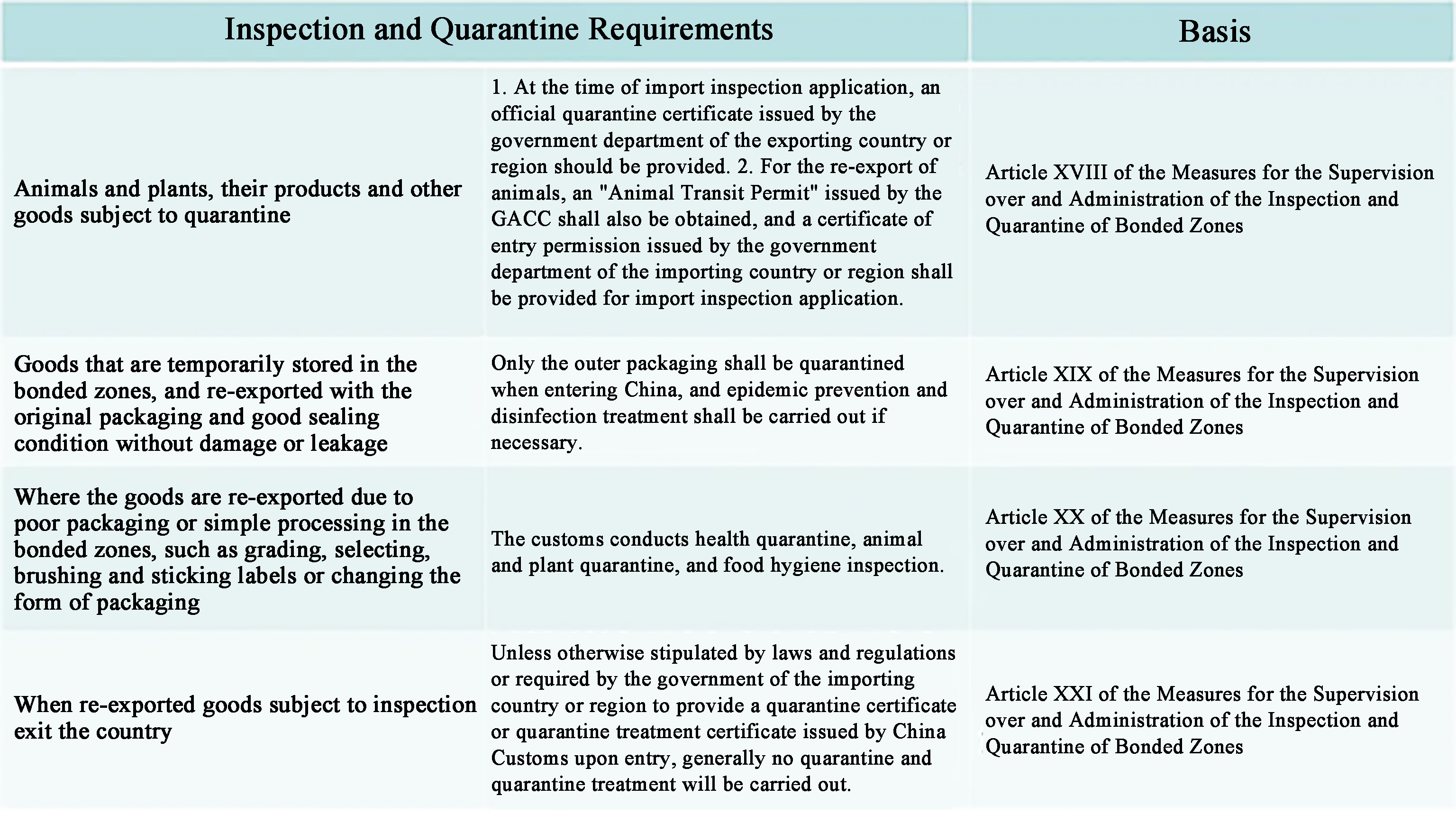 3. Inspection and Quarantine Requirements for Goods Subject to Inspection When Re-exported through the Bonded Zones