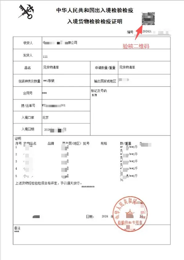 扫描《入境货物检验检疫证明》电子证单右上角二维码(如下图所示)。