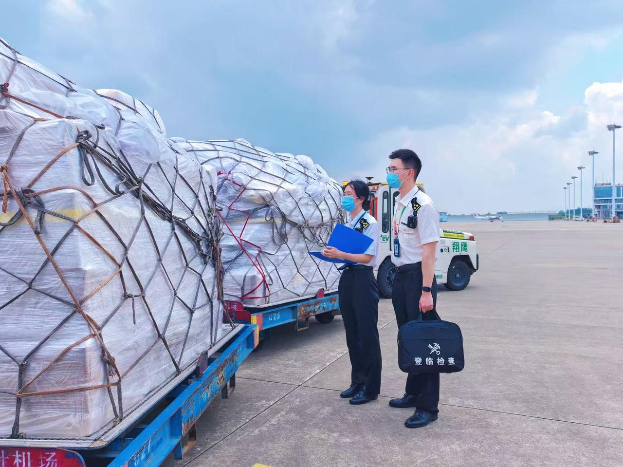 宁波机场海关关员在机坪监管货物。王海芬 摄