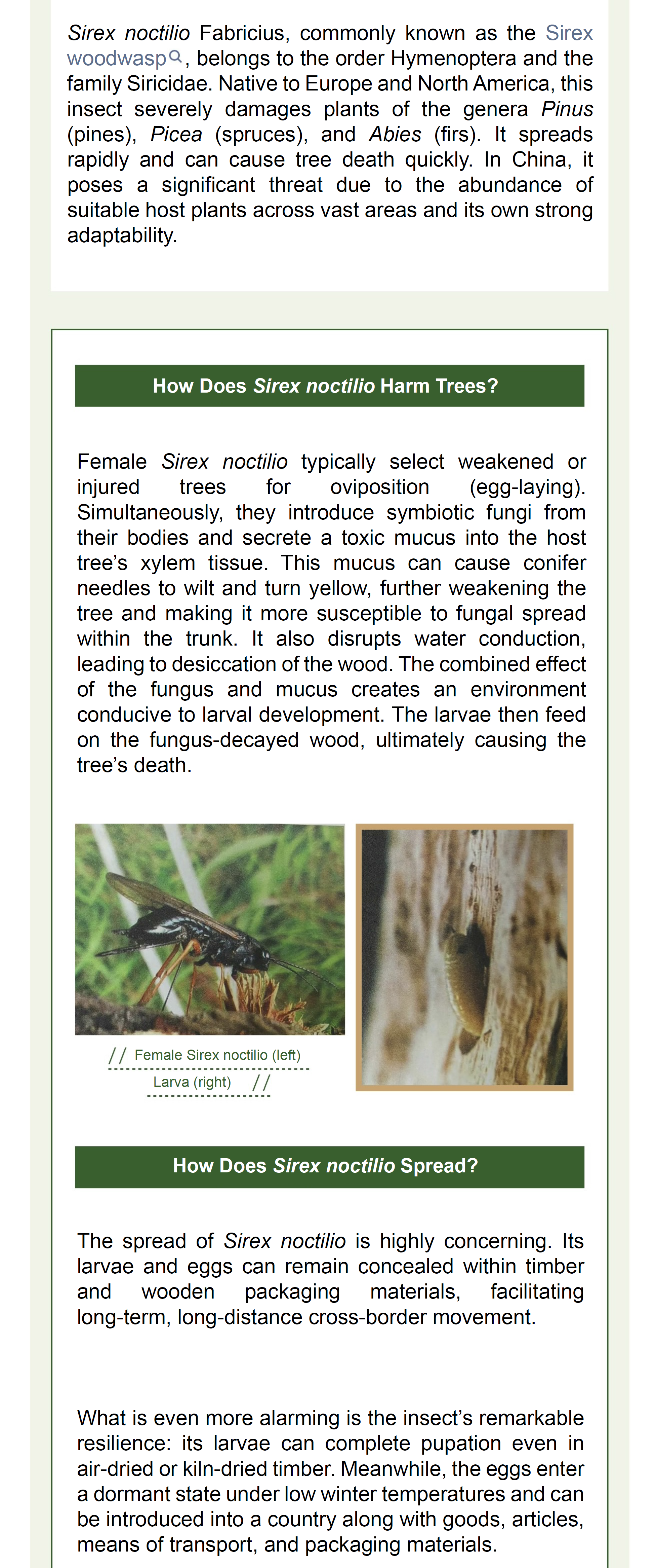 Animal and Plant Quarantine—The "Invisible Killer" Beneath the Bark:The Science Behind Sirex noctilio