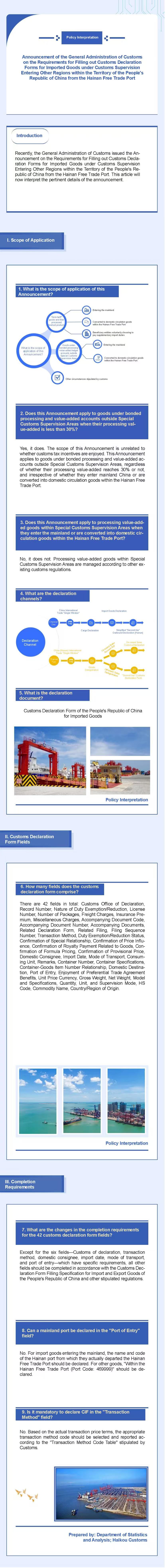Policy Interpretation丨Announcement of the General Administration of Customs on the Requirements for Filling out Customs Declaration Forms for Imported Goods under Customs Supervision Entering Other Regions within the Territory of the People's Republic of China from the Hainan Free Trade Port