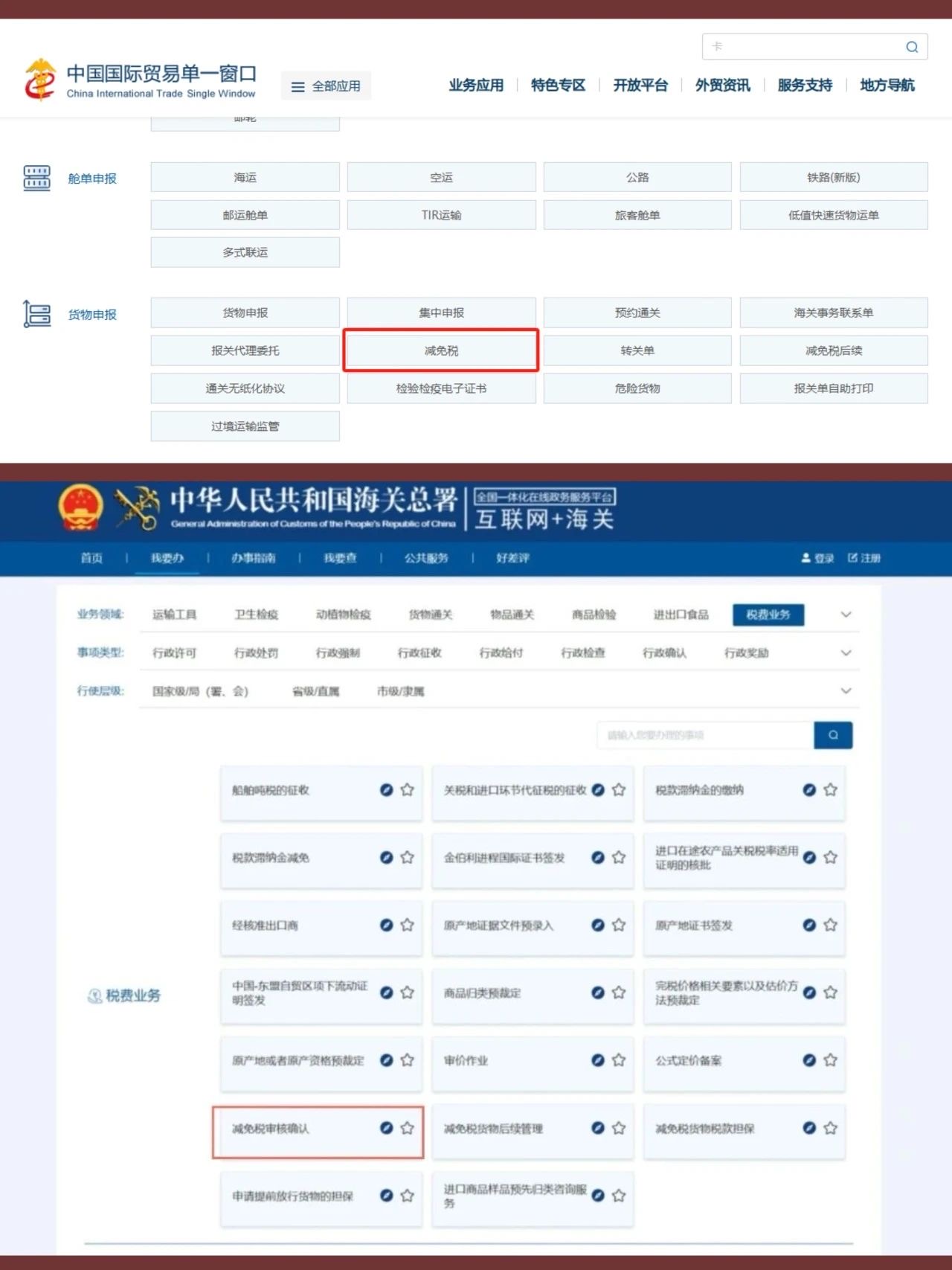 符合条件的单位可选择通过“中国国际贸易单一窗口—货物申报—减免税模块”(网址:https://www.singlewindow.cn/)或“互联网+海关一体化网上办事平台—减免税审核确认模块”(网址:https://online.customs.gov.cn/)向主管海关申请办理减免税审核确认手续。