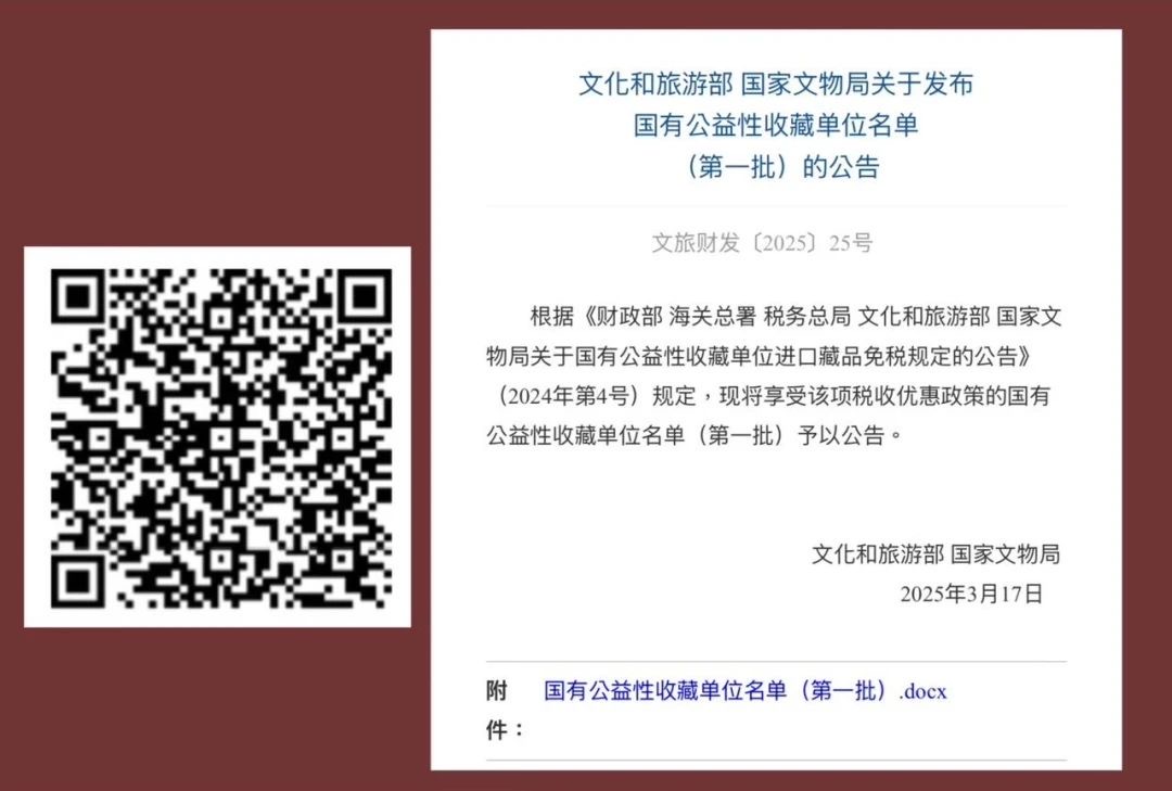 第一批名单见《文化和旅游部 国家文物局关于发布国有公益性收藏单位名单(第一批)的公告》(文旅财发〔2025〕25号)。