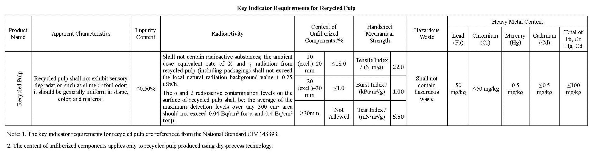 The recycled pulp imported into China must be produced from source-separated paper, paperboard, and paper products of foreign origin. In addition, the imported recycled pulp shall comply with the requirements of Chinese national standard GB/T 43393.