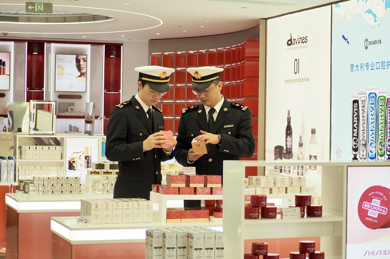 图为:关员对中东欧等跨境商品开展现场监管 吴晶景/摄