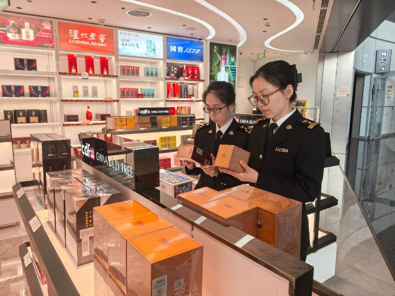 Customs officers from Ningbo Airport Customs are conducting inspections at the duty-free shop at the exit of port. Reporter Hong Yang / Photo taken
