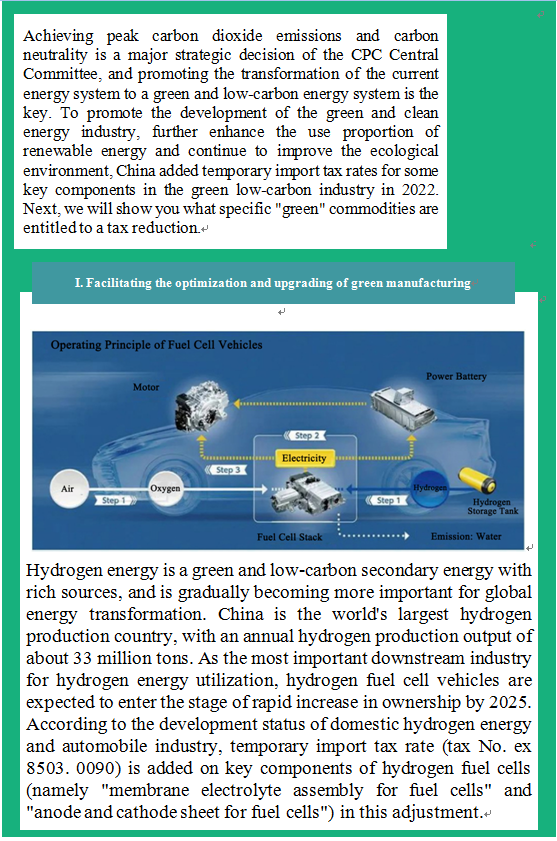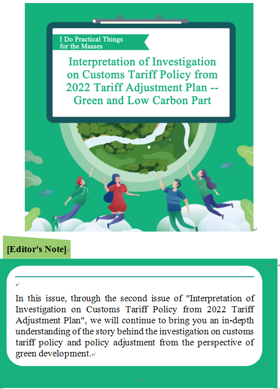 Tariff Focus | I Do Practical Things for the Masses-- Interpretation of Investigation on Customs Tariff Policy from 2022 Tariff Adjustment Plan -- Green and Low Carbon Part