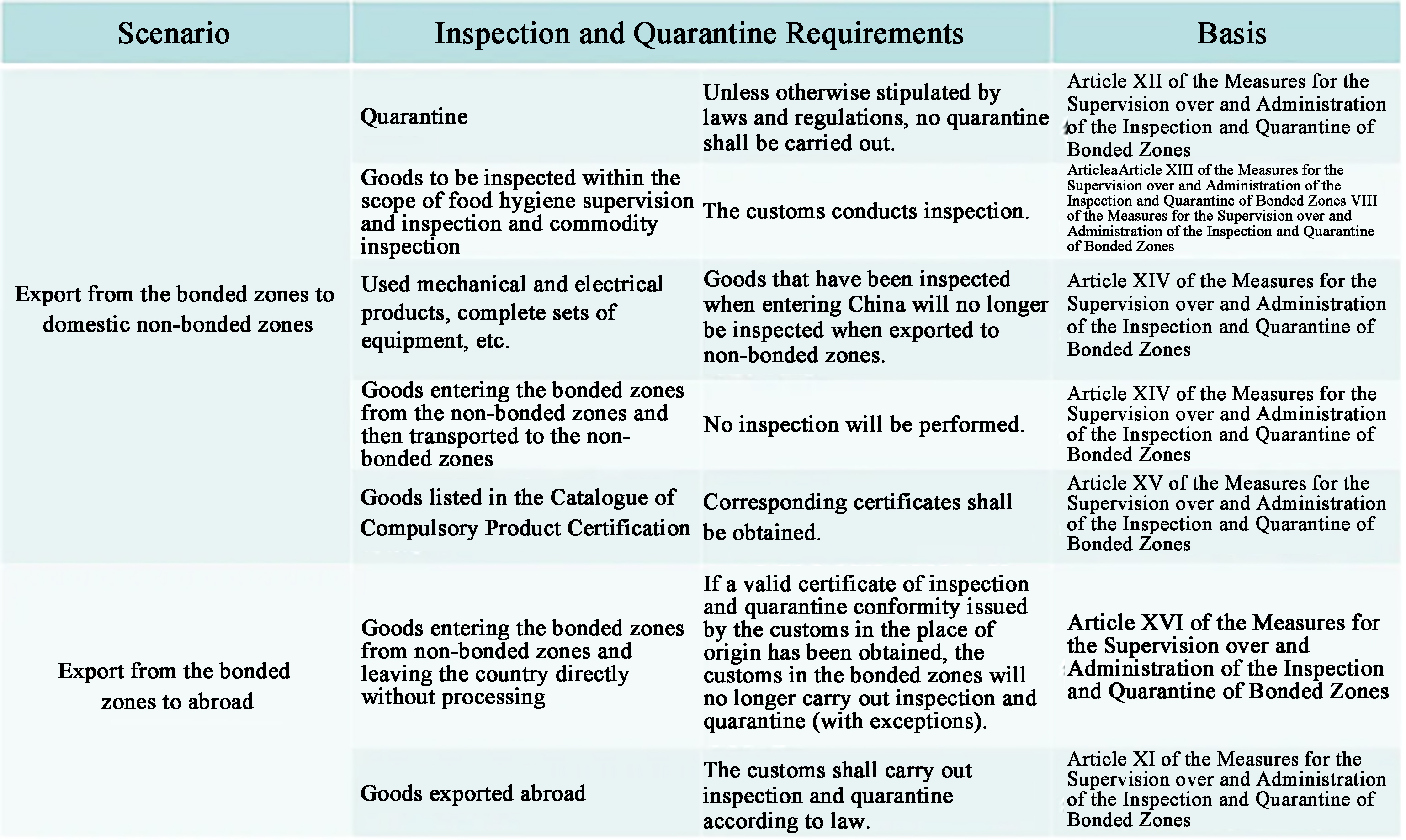 2. Inspection and Quarantine Requirements for Goods Subject to Inspection When Exiting the Bonded Zones