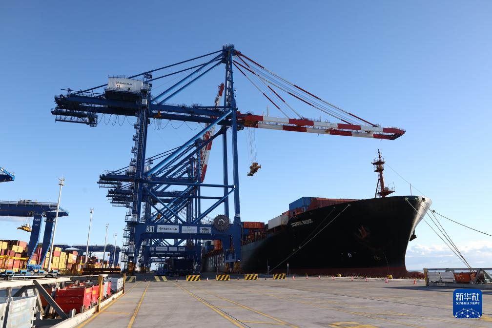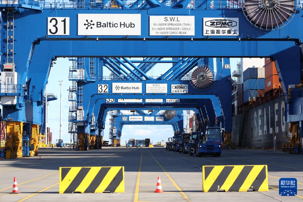 10月19日,从中国宁波舟山港出发的中欧北极快航航线首艘货船抵达波兰北部格但斯克港。新华社记者 崔力 摄