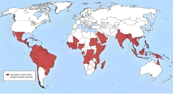 登革热是一种虫媒性传染病,由登革病毒引起,通过伊蚊传播,在我国主要由埃及伊蚊和白纹伊蚊传播。最早于1952年由日、美科学家从患者身上分离出病毒,共4个血清型。因发病时肌肉关节剧烈疼痛,又叫“断骨热”。登革出血热为登革热较为严重的症状之一,患者的四肢、腋窝、黏膜及面部可见散在出血点,并融合成瘀斑,进一步加重表现为眼结膜、鼻腔、牙龈、消化道、泌尿道和子宫等器官较大量出血。出血异常严重的病人可导致死亡。