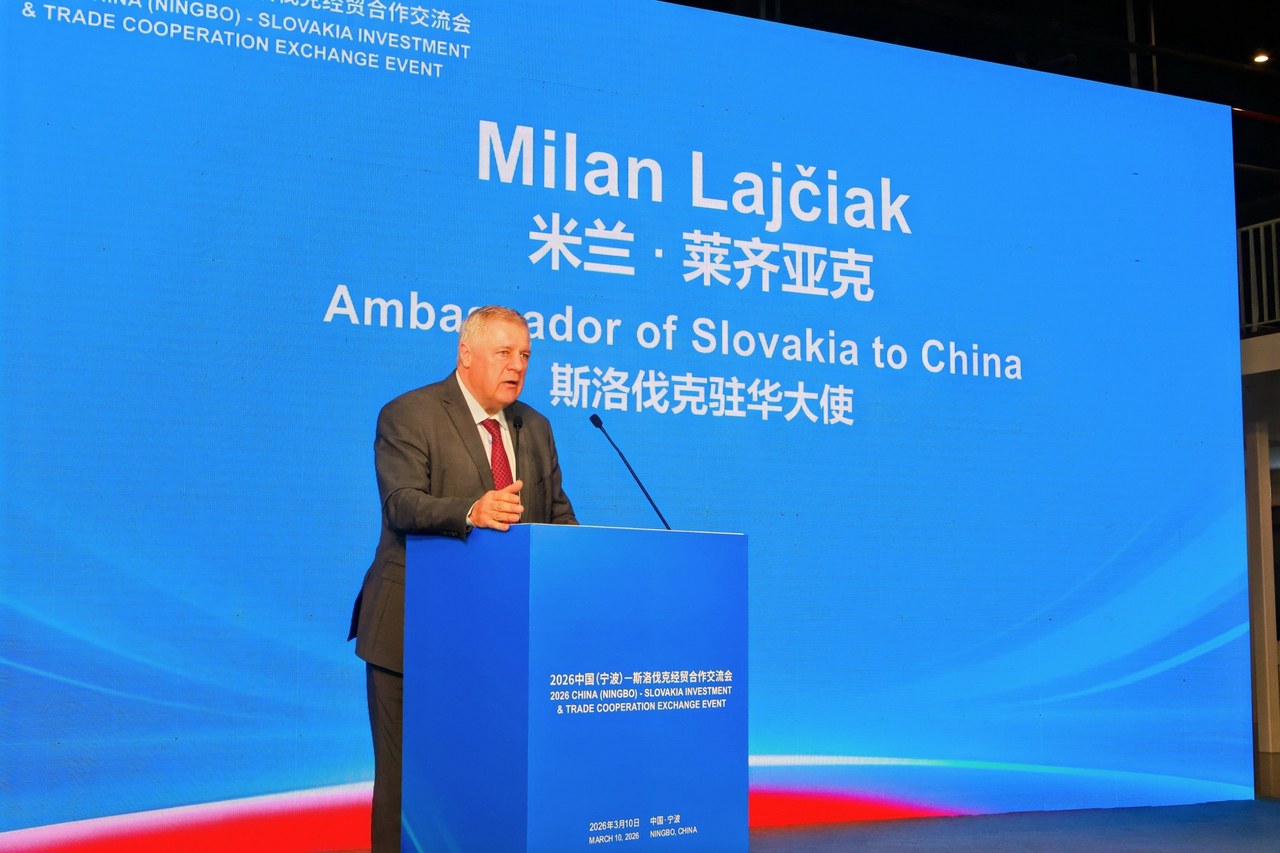 斯洛伐克驻华大使米兰·莱齐亚克在发言时高度评价了宁波的枢纽地位。他表示,宁波拥有连通世界的宁波舟山港,在产业与物流联动协同上的基础好、竞争力强,在国际航运、物流、外贸等方面优势明显,是斯洛伐克产品进入中国市场的重要门户。