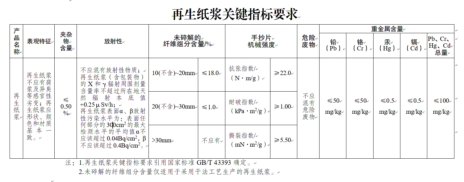(一)明确对生产进口再生纸浆原料的要求。