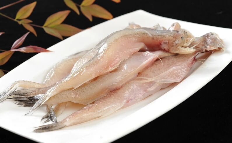 Scientifically known as Harpadon nehereus, this fish has an elongated, soft, and cylindrical body. It is named for its dragonhead-like appearance and is also honored as the "Little White Dragon of the East China Sea". The fish appears jade-white and has a tender, smooth texture. Xie Chaofu,a poet from the Qing Dynasty, once praised it with the verse: "Jade's pale glow, silk's gentle sway. A ruby maw,A taste beyond compares". After the fishing season begins, Bombay duck becomes an affordable and widely enjoyed delicacy. Common cooking methods such as steaming or braising enhance its natural freshness.