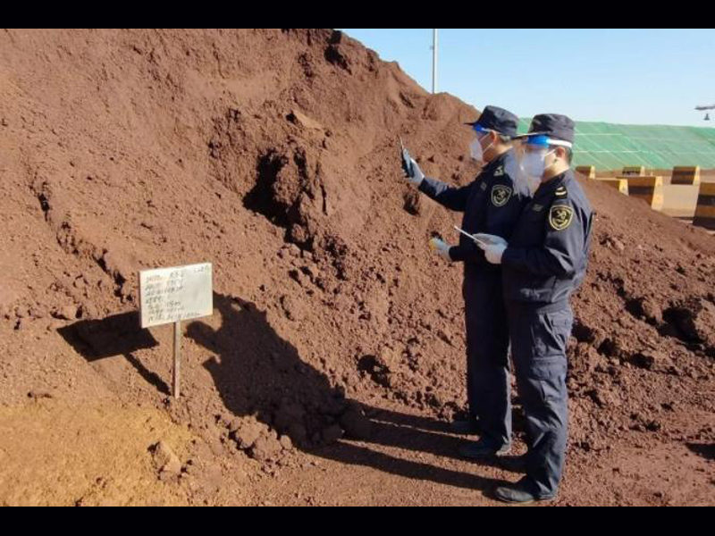 在天津港南疆码头27号泊位,天津南疆海关关员周满红利用便携式矿产品固废排查仪对“碧玺山”号货轮上装载的矿产品开展固废筛查。不到半个小时,仪器屏幕显示出了“判定样品正常、剂量率未超标”字样,表示该批货物的固废筛查、放射性检测结果均正常,货物正常放行,随即码头开始卸货作业。