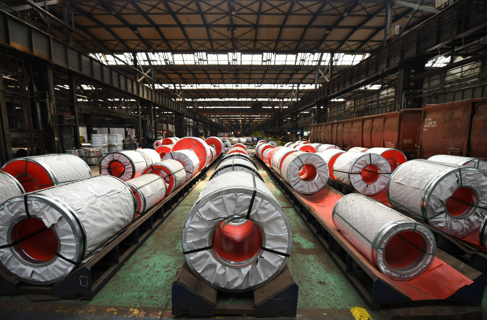 这是2023年5月5日在河钢集团塞尔维亚斯梅代雷沃钢厂拍摄的成品钢卷