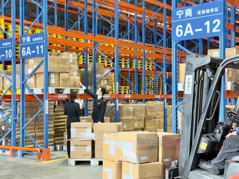 11月5日,在宁波保税区上善仓库,一批价值7.25万美元的全涤枕头、重力毯...